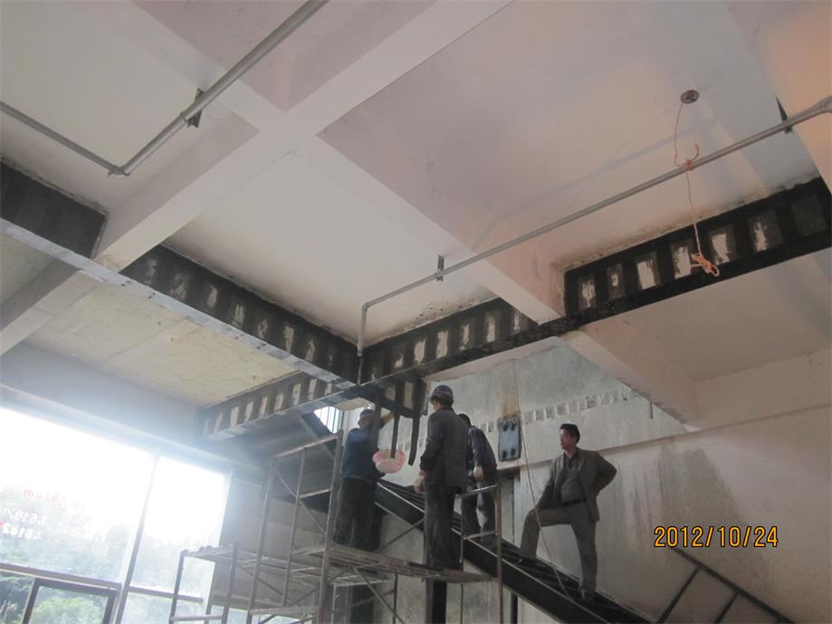 工行樂山分行沙灣支行辦公樓底層框架梁、柱碳纖維加固工程